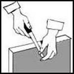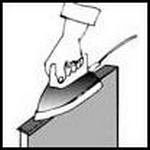Прижать ленту к торцу столешницы и нагреть её с помощью строительного фена или утюга до температуры 200◦ С (пока клей не выступит из под шва).